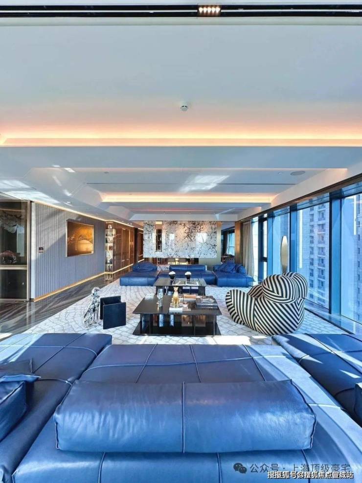 装修上,将时尚与奢华巧妙融入每个角落,所有的窗帘、移门、提升窗、灯光、空调、新风、地暖都可以通过手机远程控制。