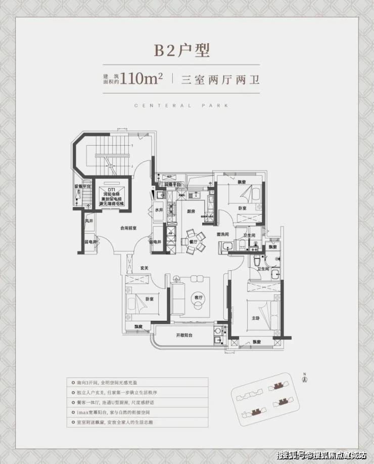 关于中环铂樾的户型,遵循“好房子”的舒适标准,强调户型方正、南北通透、动静分区、干湿分离等核心优势,每一个户型都极具竞争优势。