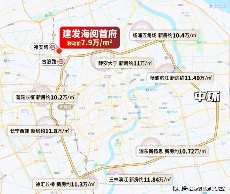 相比之下,联动价仅约7.9万/㎡的桃浦15号线地铁房——建发海阅首府,俨然是整个中环肉眼可见的价格洼地!