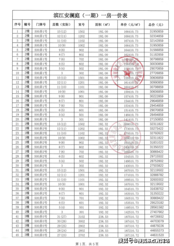 一批次房源一房一价表:
