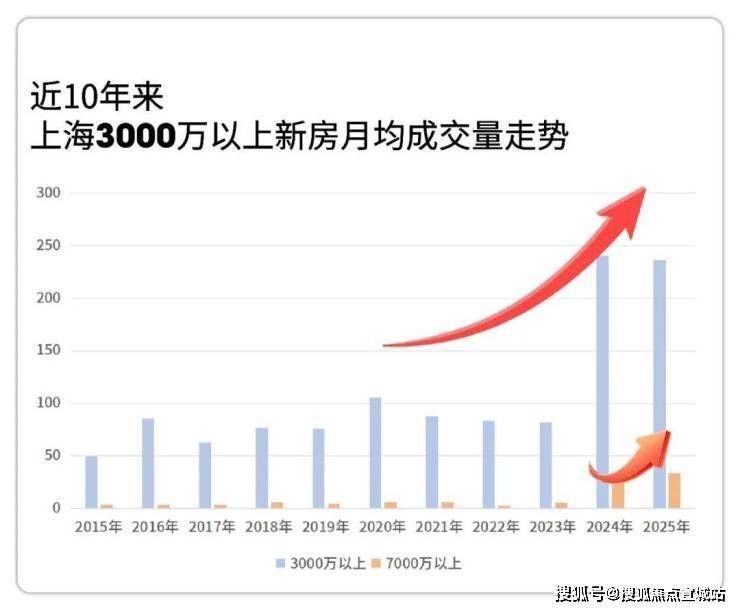 2025年上半年,上海共成交了1418套总价3000万以上的新房房源,延续了2024年的火热,相较于2023年上涨了近300%,是近10年来的成交量高点!