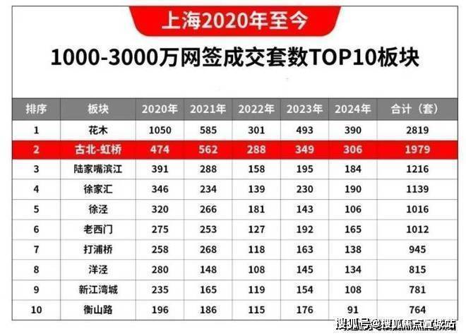 新房供应的缺失,也使得古北二手房成为圆梦古北的唯一选择,二手市场常年火爆,数据显示,2020年至今,上海1000-3000万价格段的二手房网签成交量中,古北连续5年高居全市第二,仅次于面积和楼市体量都远超古北的花木板块!