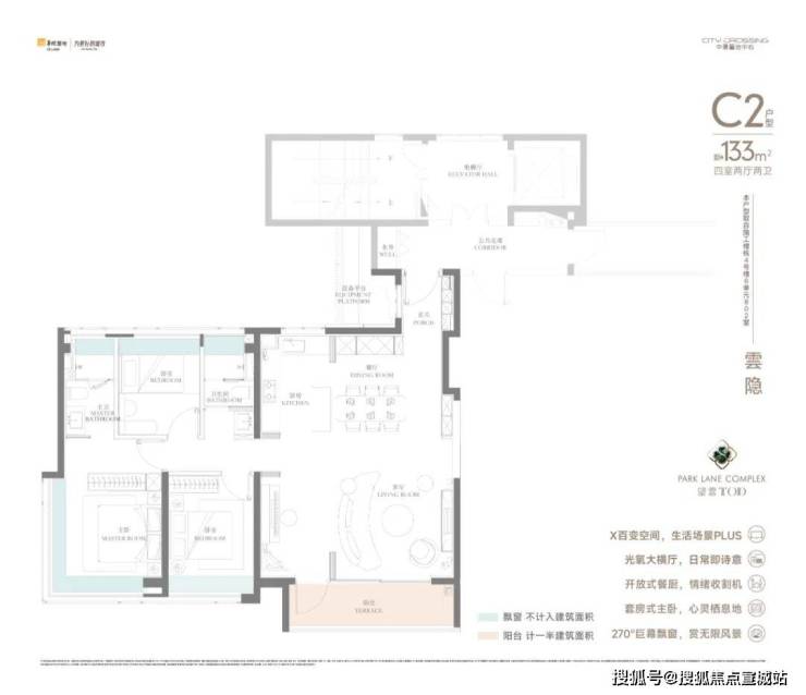 建面约133㎡的4房产品,拥有一个改善产品所有的特质。