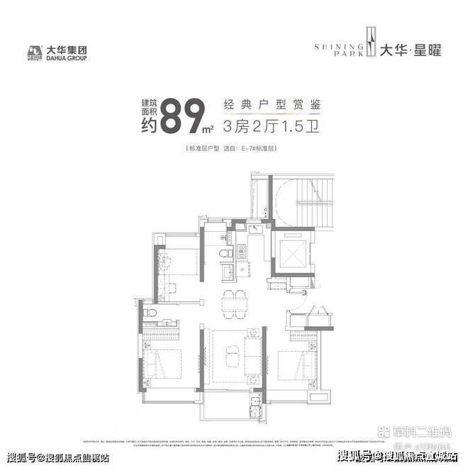 大华星曜售楼处营销中心:400-8828-814大华星曜售楼处电话/地址☎:400-882-8814(开发商热线)大华星耀89㎡户型,三开间朝南,并且全卧室带飘窗,室内的采光、视野以及空间延展性都非常出色。值得一提的是,室内没有任何的走廊和拐角,在加上一梯两户带来的高得房率。所以虽然是约89㎡的紧凑型3房,但这个户型还是有空间做了一个1.5卫的设计,保证了主人的私密空间,也避免了早高峰用厕的尴尬。