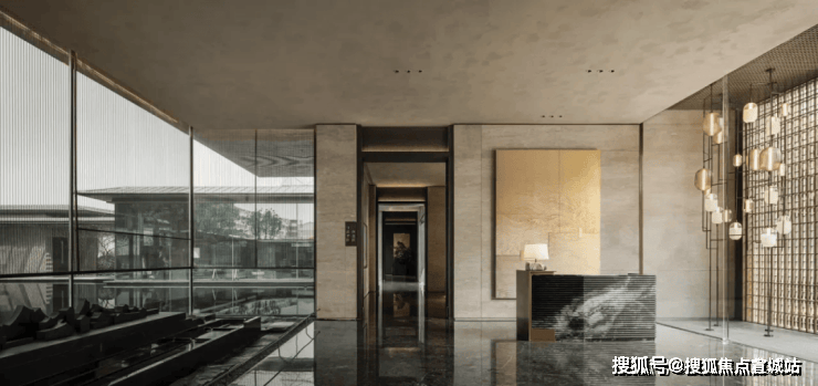 地下精装大堂采用米白与棕褐色调巧妙搭配,精选定制奢华石材与细腻纹理岩板,营造出极致尊贵的空间氛围。