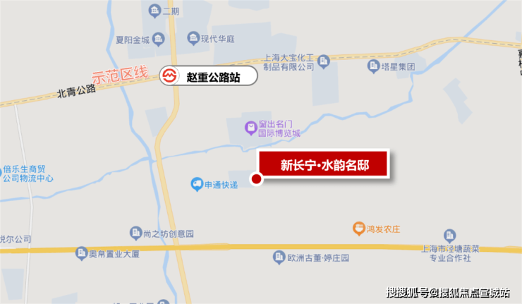 项目北侧直线约1公里就是示范区线赵重公路站(在建),向西可以直达青浦华为研发中心,向东2站即可到达前湾,3站直通虹桥枢纽!