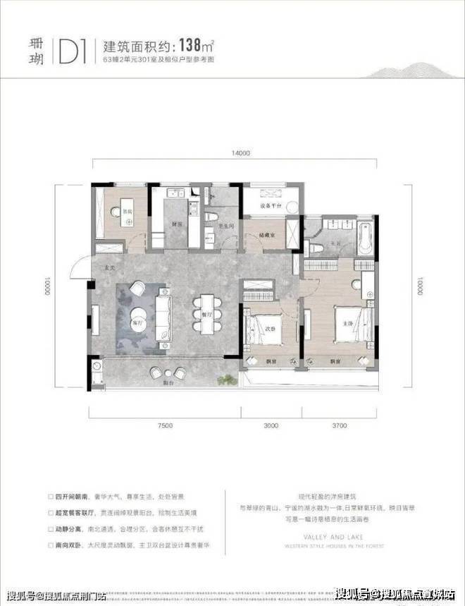 户型点评优势:杭州如沐清晖城售楼处电话☎:400-8828-814(售楼处预约看房热线)122㎡的三房两厅两卫设计,留出了独立的玄关收纳空间与落尘区,十分贴心。三个房间分布在三个方向,空间都不显局促,主卧更是自成一体。客厅连阳台,一动一静之间景观尽收眼底。