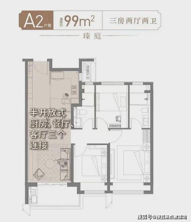 细节一:99㎡户型开放设计,核心区利用率MAX!