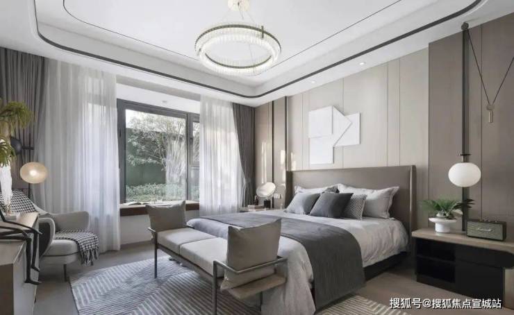 主卧套房设计搭配景观飘窗,最大限度上引景入室,营造独有的沉浸式居住氛围;