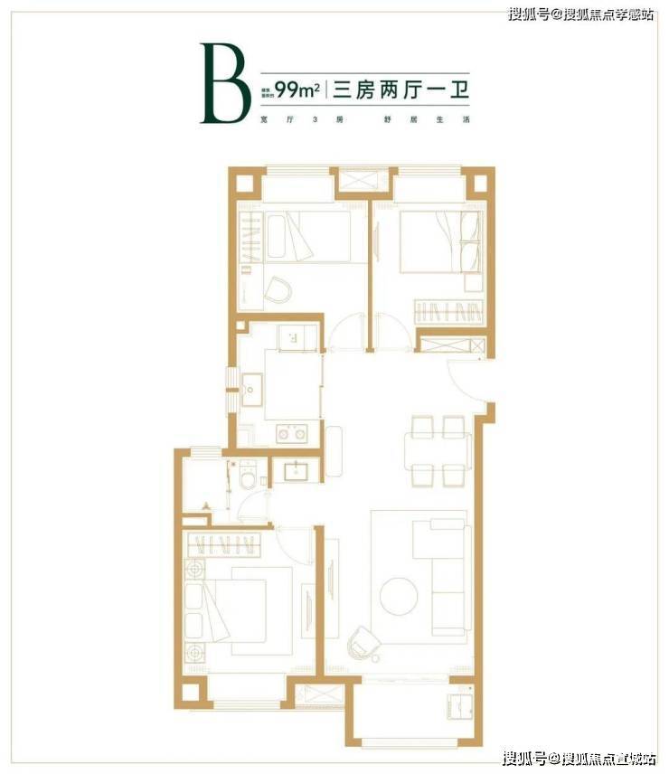 约99㎡3房2厅1卫样板间照:
