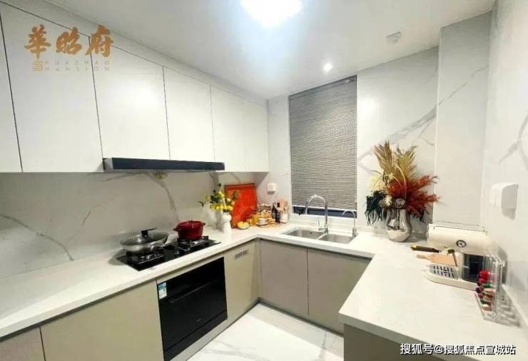 华昭府售楼处电话:400-8618-004(营销中心预约热线) 室内地面摒弃了常用的瓷砖,选择了更加耐磨、更有质感的岩板,这种奢侈的做法成本直接翻了几倍。