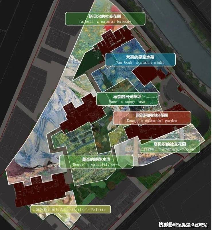 让人眼前一亮的是,景观设计更以印象派艺术史诗为灵感,独创六大主题花园,将传世名作解构为可游可赏的立体生态空间!有梵高的星空水苑、莫奈的睡莲水湾、马奈的日光草坪、塔贝尔的社交花园、雷阿诺的缤纷花园以及调色板儿童乐园……