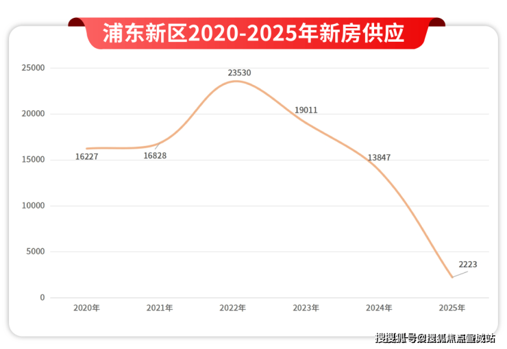 第一,整个浦东2024-2025年的新房供应是急剧下滑的: