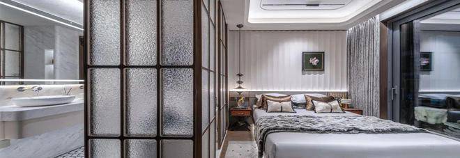 5.整体采用了海派的装修风格,例如更耗时更费钱的带弧度的半圆形吊顶!以及当大部分项目还在用长虹玻璃时,招商臻境在厨房的三轨道移门处使用了水波纹玻璃,更具奢华感!这样的细节上次还是在看3000万级别的豪宅时才看到!