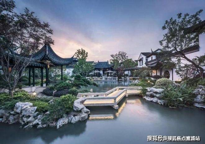 与全国在售中式作品相比,上海桃花源中轴五进制中轴园林,完整性、丰富度堪称全国之最.金瑞园坐北面南,由正南入园,中轴园林不仅设对景峰石、蜿蜒水街、太湖山石、亭台轩廊等景观节点,还以宽广山石庭园和辽阔水景,呈献潆回环抱之势,意趣无穷.另外,山林连绵、亭廊曲折,江南的温婉、隽永,尽藏其中.