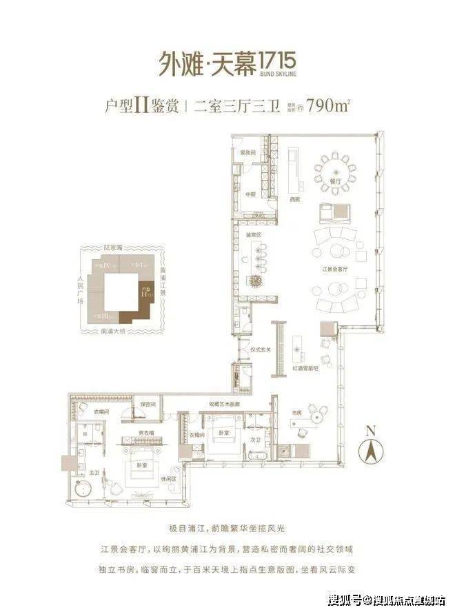 270°面南向大宽厅,南北通透,光景绝佳。外滩天幕1715售楼处电话:400-8851-337(预约热线☎)开敞视野自成气度,雍容舒展,窗内、窗外皆可作“景”,内敛深刻中畅贯优雅情调自然延伸。