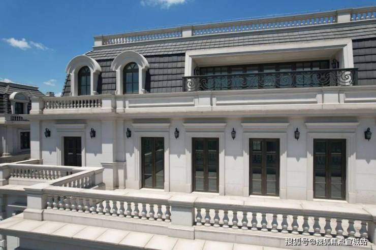 项目采用的是法式风格,注重庄严、厚重、尊贵的仪式感。外墙上腰线、檐口线、门窗边线等选用精美雕刻和浮雕,植物、人物或神话故事的图案,远看庄重华贵,近看细节耐人寻味。增加了建筑的层次感、精致感和艺术感。