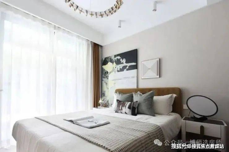 私密场域依旧保持静谧,黑白色基础上搭配了更多的色彩,例如深棕、浅紫等,艺术品的衬托深邃迷人,热络了家的氛围。