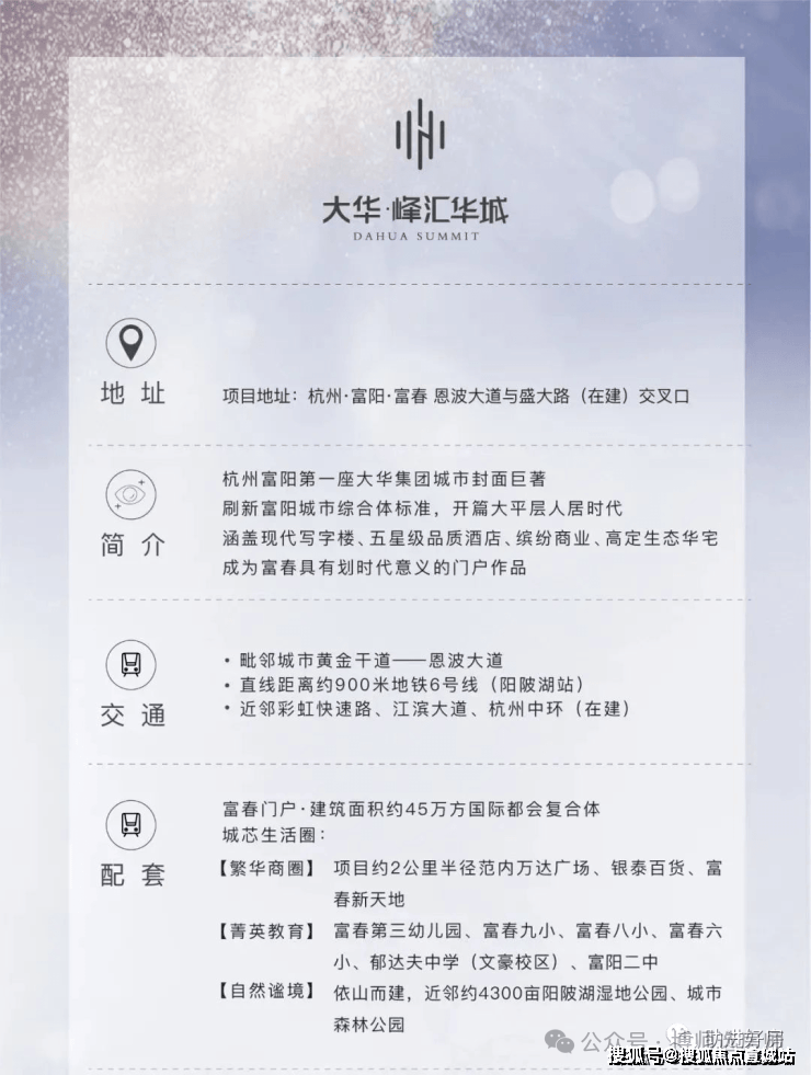 大华峰汇华城售楼处电话:400-9696-224【售楼处电话】在深刻解读富阳山水气质后,将之倾注在建筑作品的营造之中,从规划、立面、景观等方面,以空间为行,富春山水为魂,将现代景观营造与融合,重新书写富春江源源不绝的新生长卷,构建一座城市的理想与向往,礼献一处饱含人文主义情怀的美好居所。