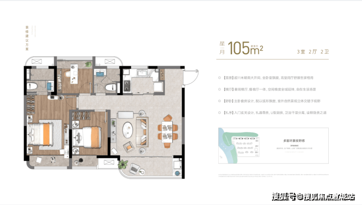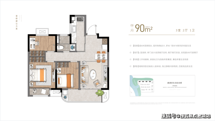 2、(方正)户型方正,高得房率,超12米三开间朝南,动静分区,流畅居家动线;