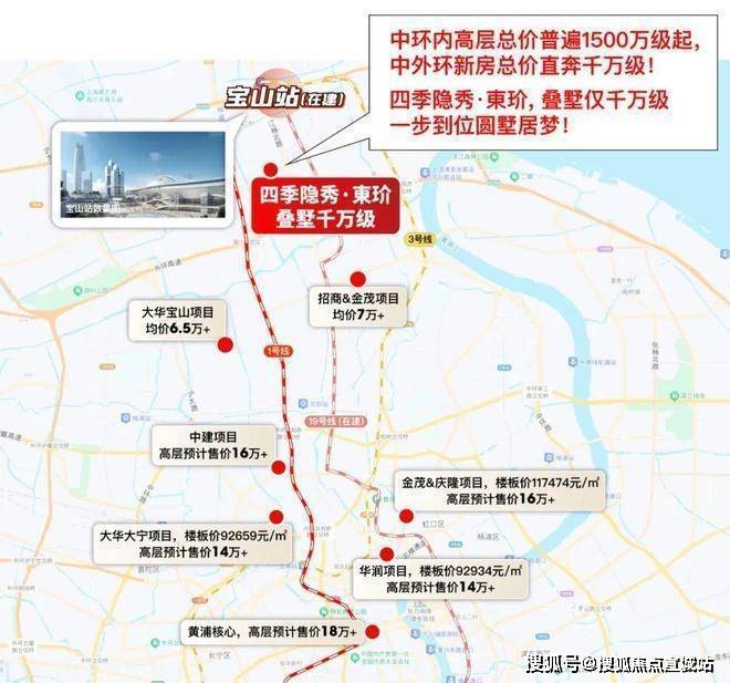 宝山站(在建)总开发规模约50万㎡,沪渝蓉铁路、沪苏通铁路二期及19号线(在建)等在此处汇集,预计年客流量约5400万。(信息来源:上海发布公众号)