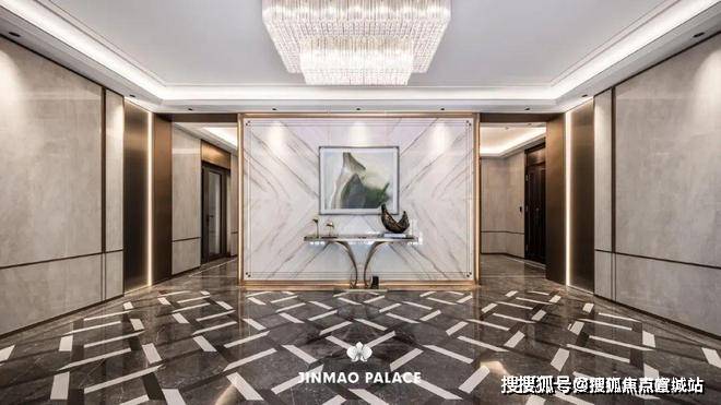 地下精装大堂彰显着金茂府的高贵与典雅,石材、金属与灯光的相得益彰,既增加了空间的温馨感,又提升了整体的舒适度;