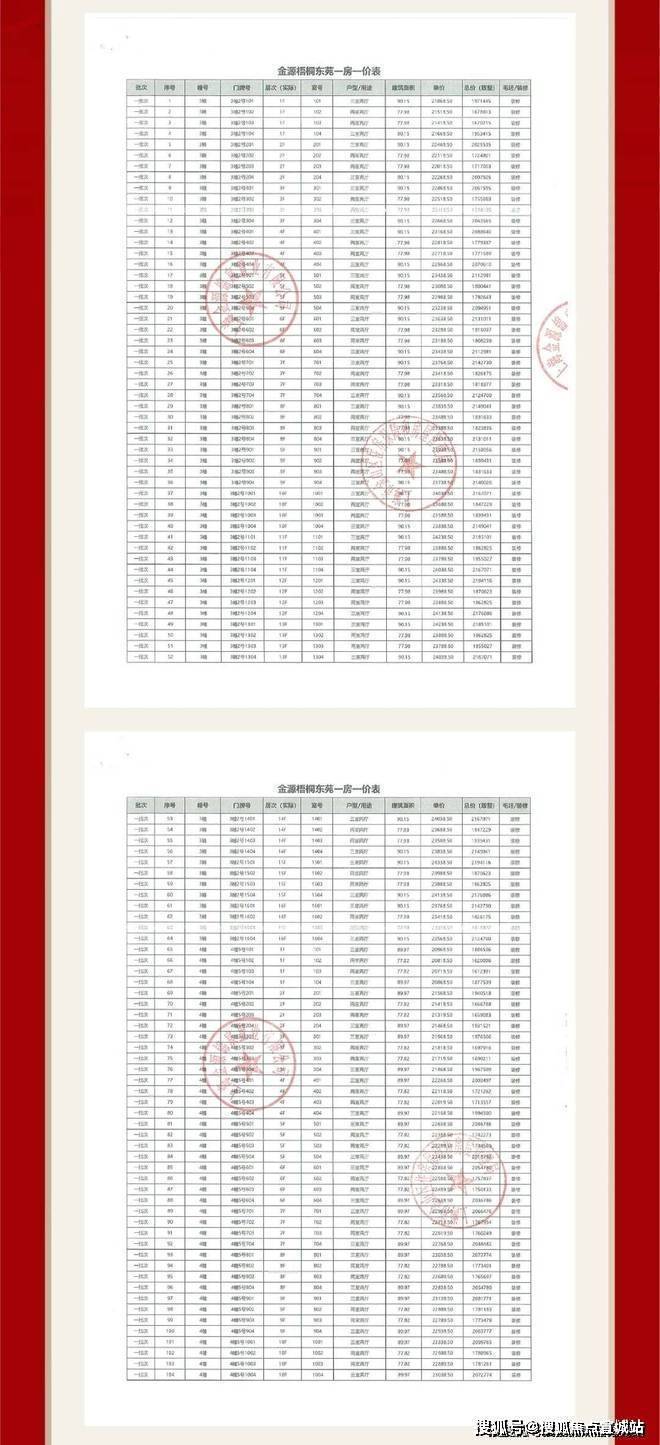 项目一房一价表