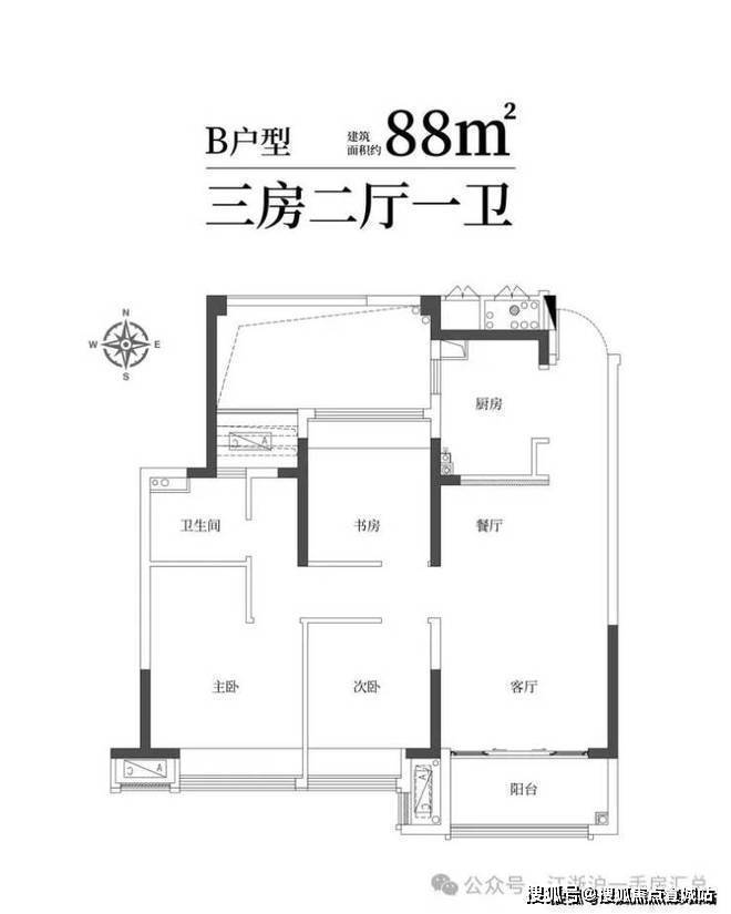 建筑面积约88㎡精雅三房一卫,三口之家理想