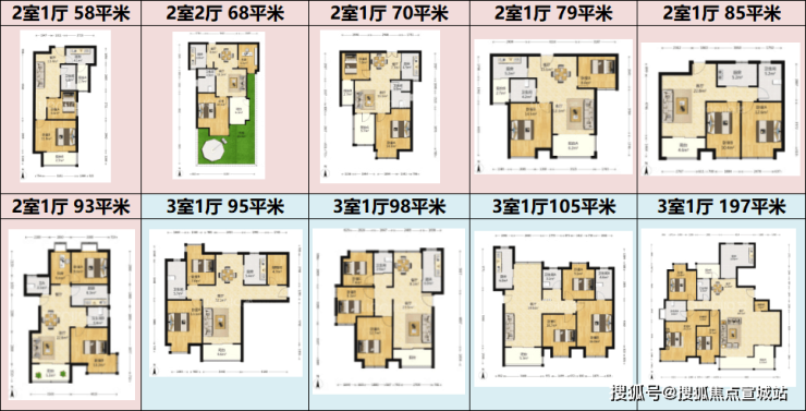小区的户型是2房起步,2房和3房是主力,还有一些4房及以上的大户型。90平以下的2房都是北向入户的户型。90平以上才是侧边入户南北通的户型,在布局上动静分离,功能分区。