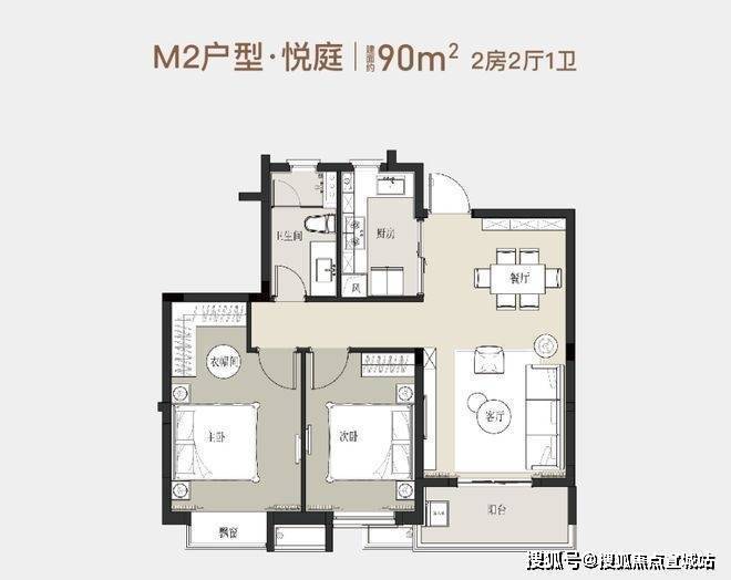 90平方米的2房2厅1卫户型图