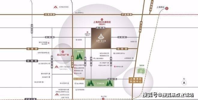 中国百强房地产企业光明地产,是金山府的开发商,其项目遍布全国十省二市,深耕金山多年,享有良好声誉.在板块上,上海南大门、长三角一体化、科创湾区等区域的发展推动了板块的崛起,区政府也位于此地.