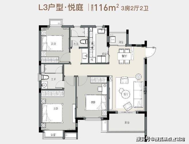 116平方米的3房2厅2卫户型图