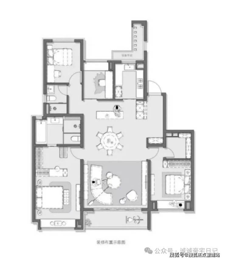 中海海上和集售楼处电话:400-8778-334建面约179㎡4房户型,高自由改造度!