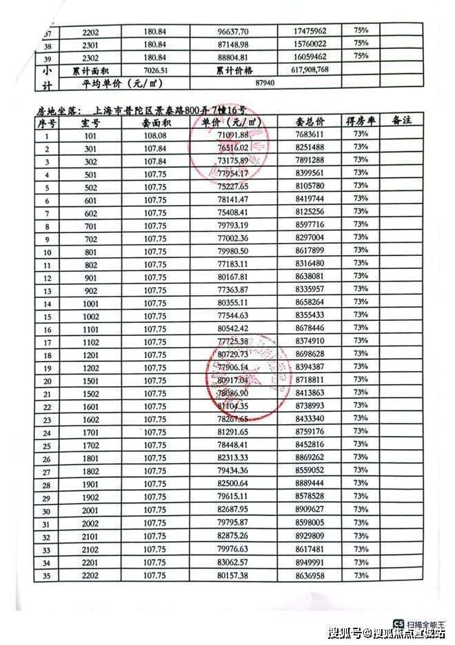 一房一价表: