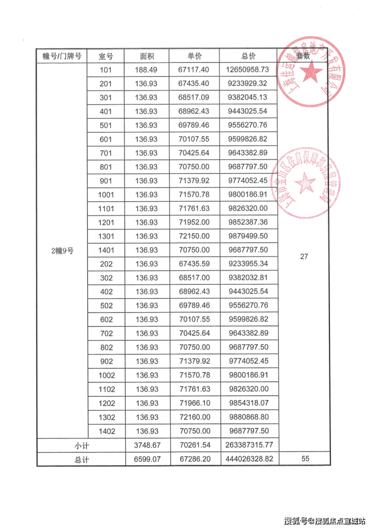 项目一房一价表▼