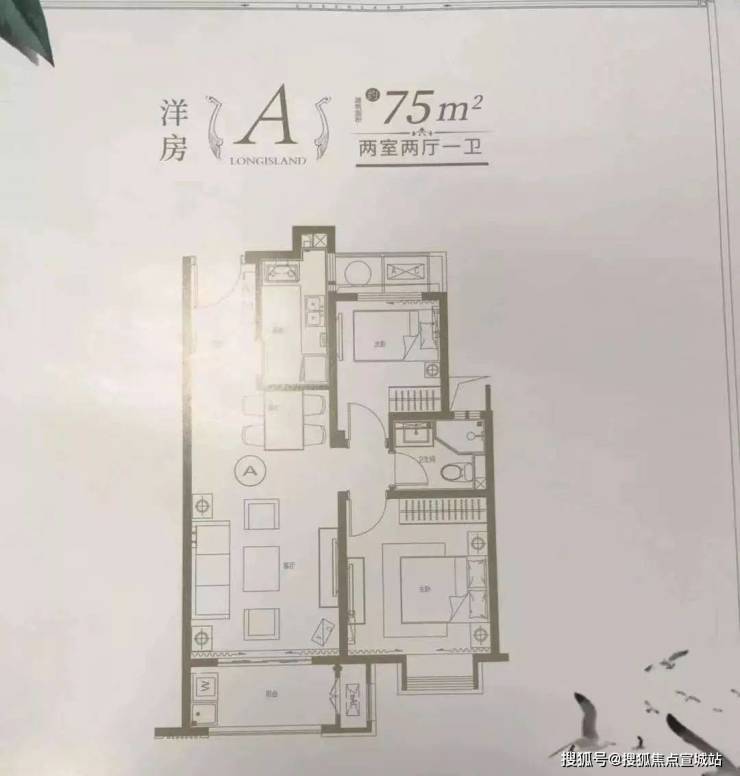建面约75㎡ 2房2厅1卫