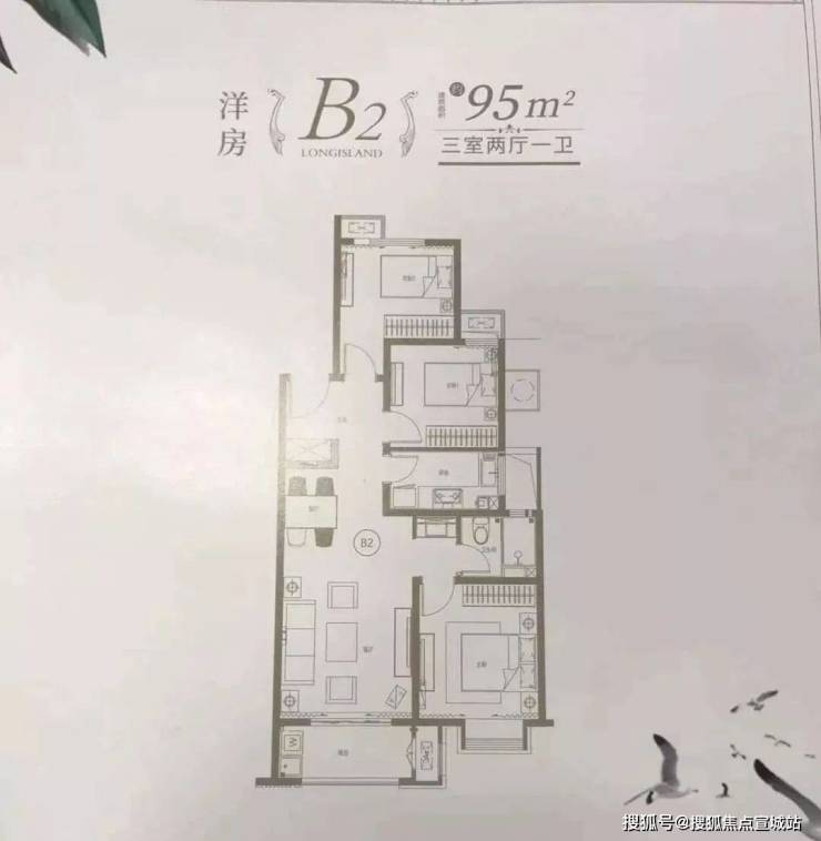 建面约95㎡ 3房2厅1卫