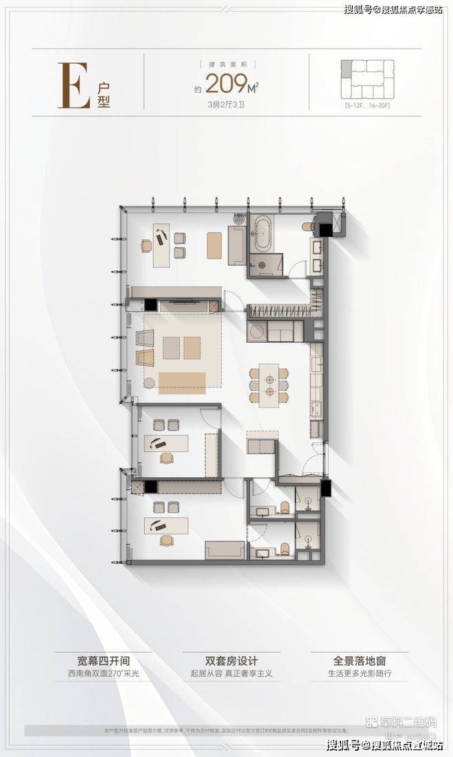 5️⃣户型优势:4.2米层高,全落地窗设计,多套房设计满足三代同堂