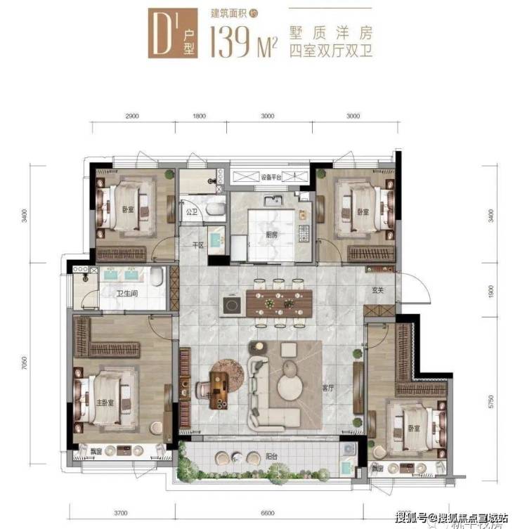 建面约139㎡的大四房,四开间朝南,主卧面宽约3.7米.包括北面书房在内,另外三个房间的面宽都达到约3米,不会觉得局促.