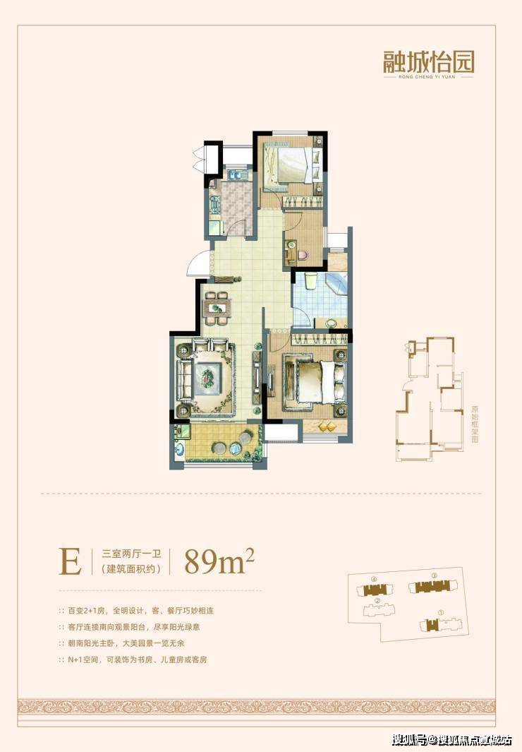 户型信息:有 89㎡三房、103㎡三房、125㎡四房等户型。
