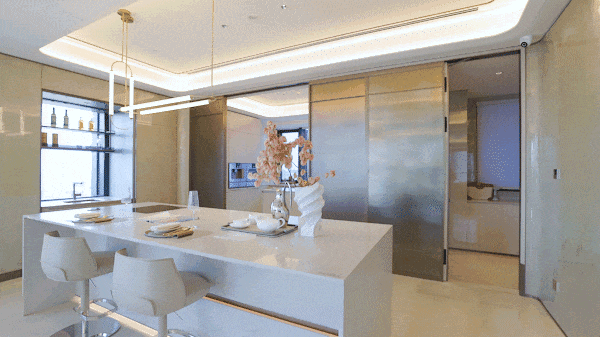 厨房内的厨电甄选塔尖厨电品牌嘉格纳,橱柜选用德国高端品牌希曼蒂克;卫生间的台盆、马桶等选自德国唯宝,浴缸选用瑞士劳芬,水龙头、花洒选用意大利GESSI,每一处细节都彰显着奢适与品质.