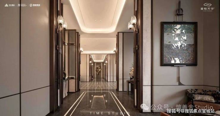 大门还是不错的,延续着卷大门的风格,一个刚需盘能有这样的大门已然相当不错了。萃取东方礼制精髓,沿东西向主轴设置多重归家院落,形成主入口至迎宾水院及度假水池为一体的礼序归家轴。层层递进的空间,在步移景异中,营造出多重归家仪式。