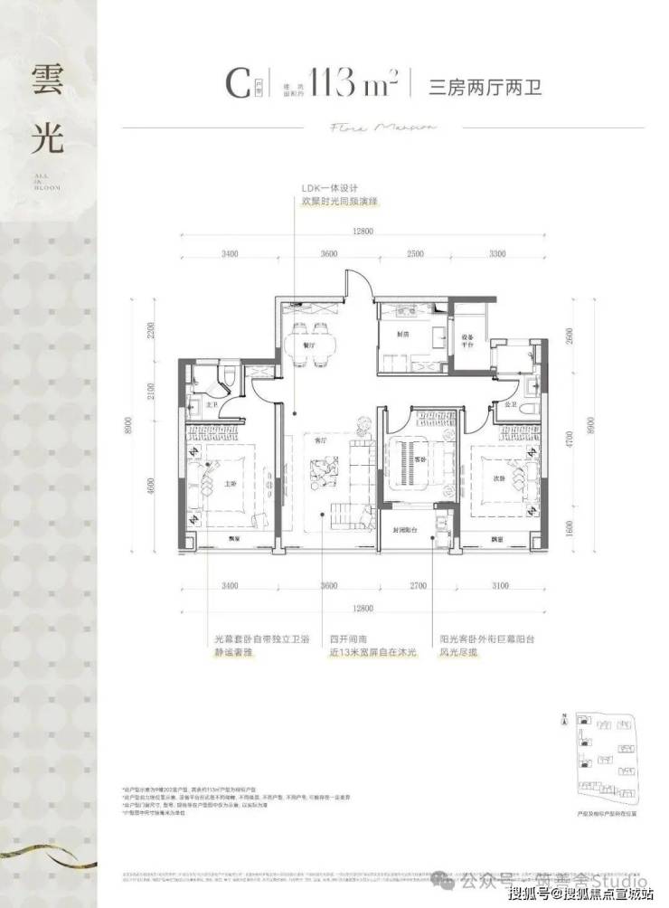 项目总建面约9万方,规划11幢12-16层纯高层,采用"南低北高"的错落布局,建筑限高50米,楼幢间距预计较为开阔,错落式布局,打造了两大主题园林空间。推出建面约99㎡与113㎡精致三居室,以及建面约108㎡、120㎡、128㎡、139㎡宽敞四居室,满足不同家庭需求。