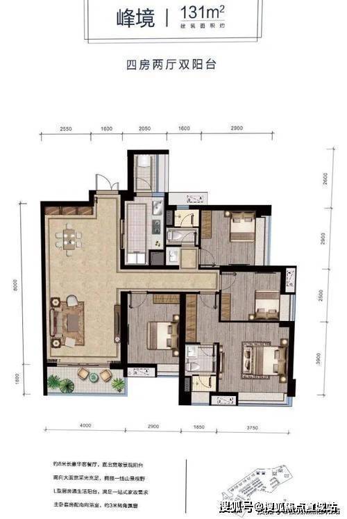 【户型面积】 :东边套336㎡四房、西边套340㎡三房,顶楼430㎡,户户带12平阳台