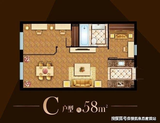 户型有38、39、42、50、56、58平(2房), 得房率更是达到了81%。