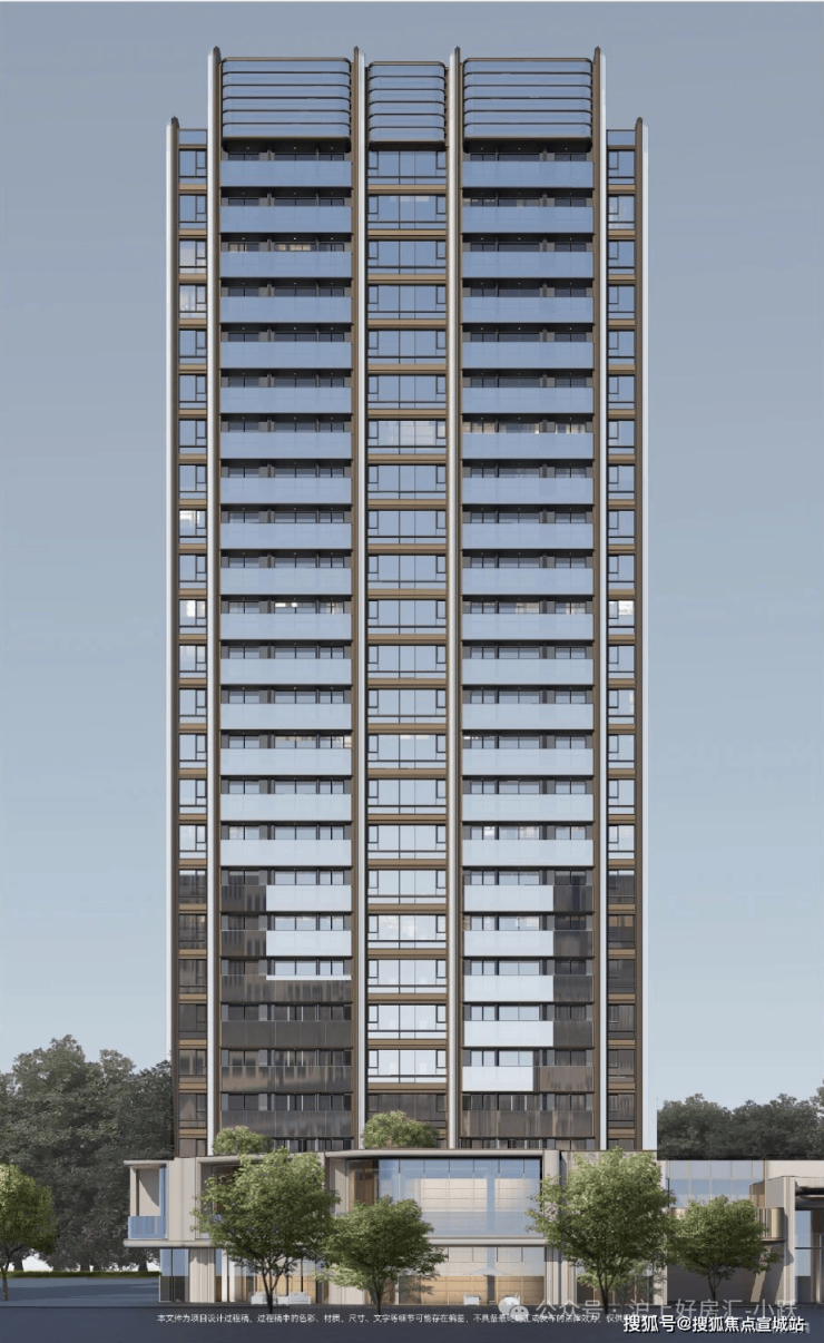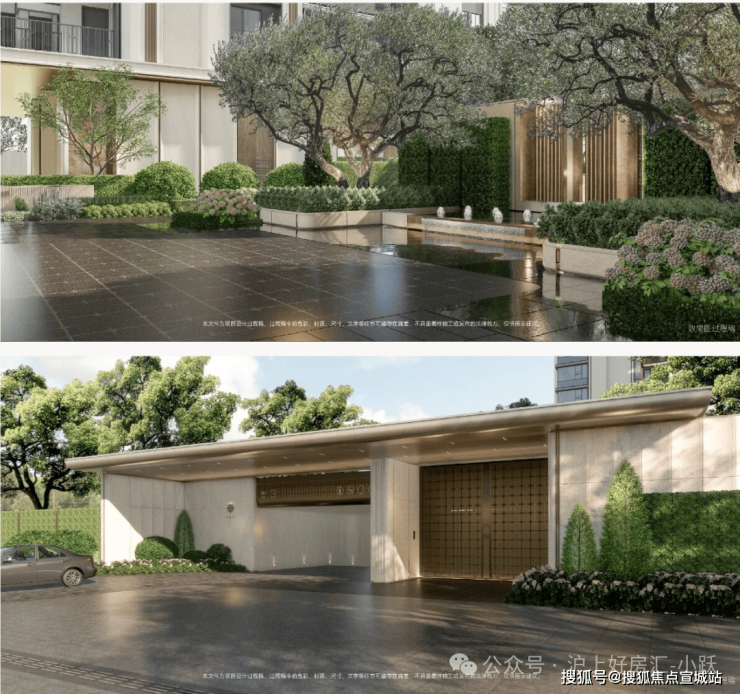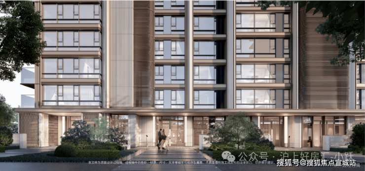 项目打造现代海派风格的外立面,线条简洁大气; 社区规划六重生活体验空间,从酒店式落客入口、镜面水庭到美学花园,旨在将高端酒店的奢享基因融入日常生活。