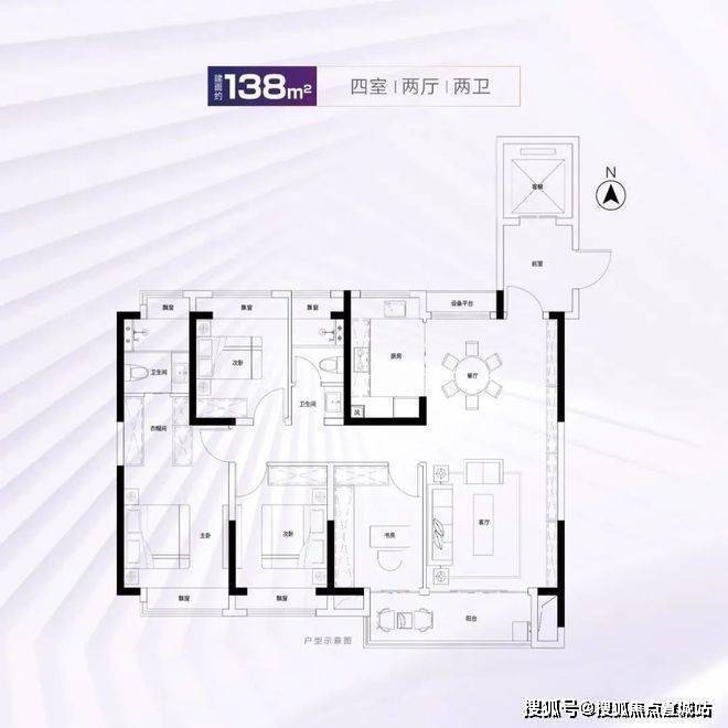 方正格局:全明阔绰四室、约13.4M南向四开间,打造尊荣生活格局
