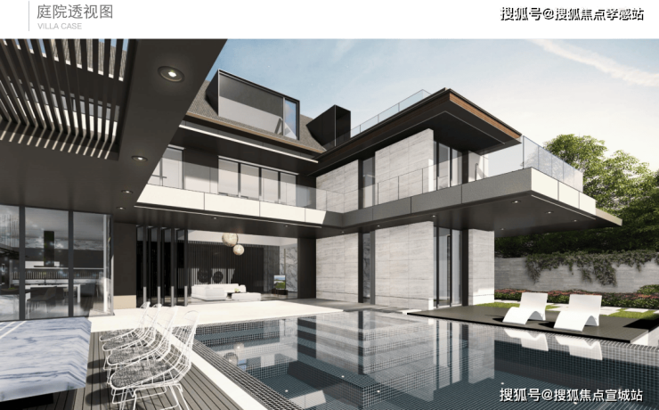 北入户的190+290房型,一层朝南直面庭院和泳池,如果配上整扇的落地玻璃移门......
