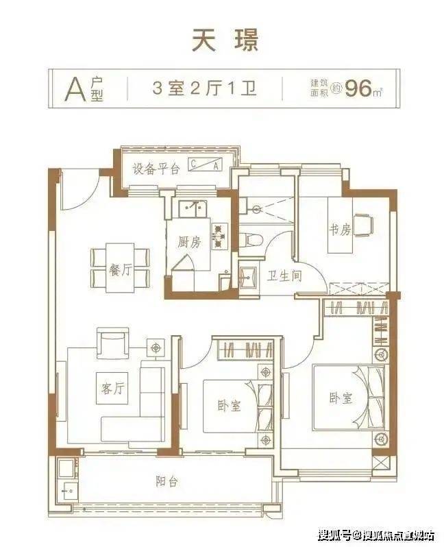 96平户型图 图源:项目