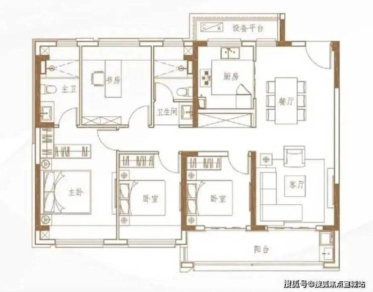 项目户型虽然标注为3+1房,不过仅有三个房间可作为卧室使用。